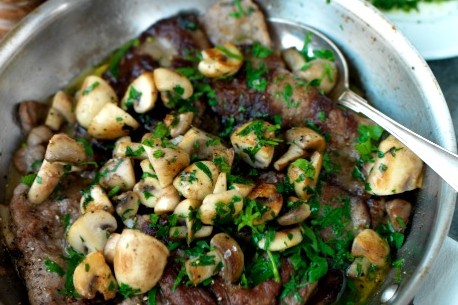 Kalvmedaljong med champinjoner och citron. På italienska Scaloppine al limone di vitello. Servera med ett vitt surdegsbröd.