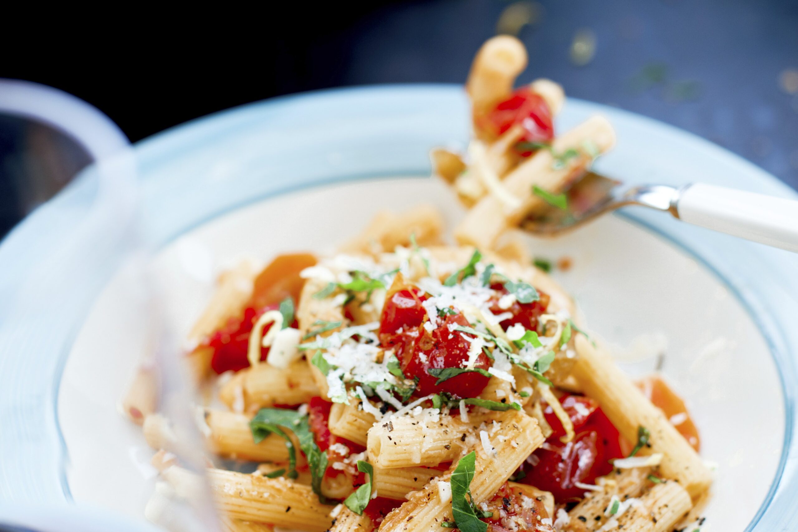 Pasta Rigatini Quadri all’Agnello Perduto är en husmansrätt från Toscana. Lammet får puttra med i grytan och ger härlig smak åt tomatsåsen.
