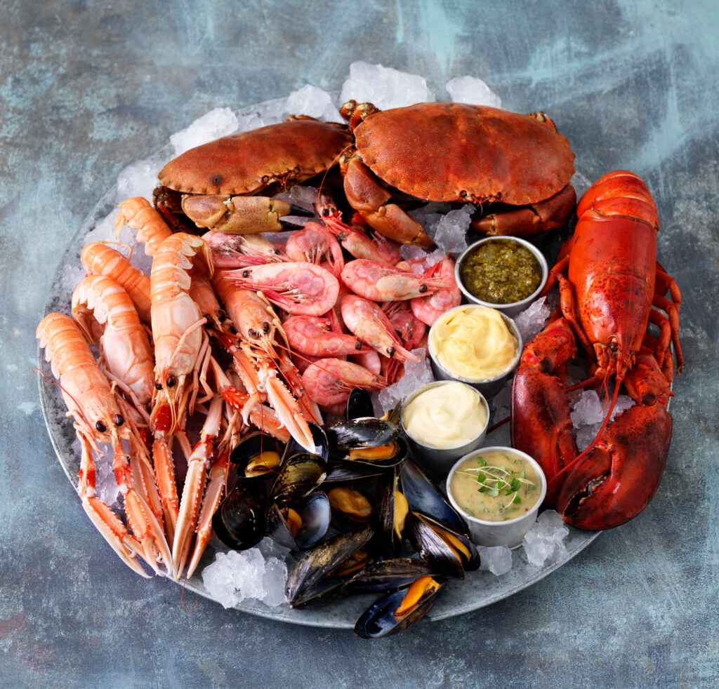 På vårt skaldjursfat ingår något av det bästa havet har att erbjuda men du väljer förstås efter din egen smak.