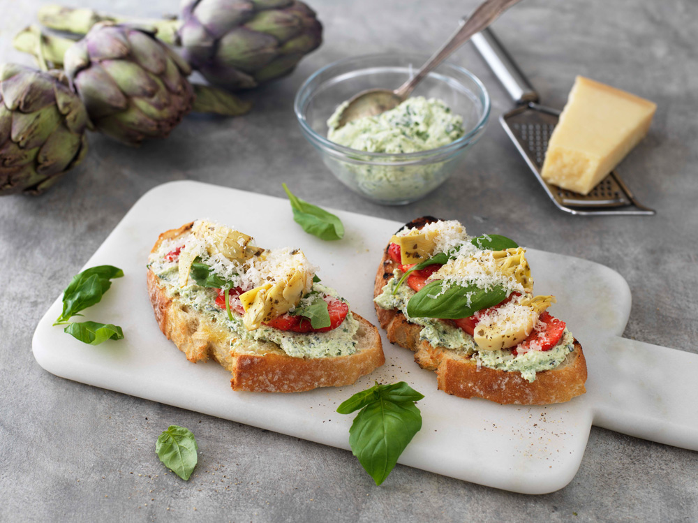 Sommarsmörgås med kronärtskocka och ricotta