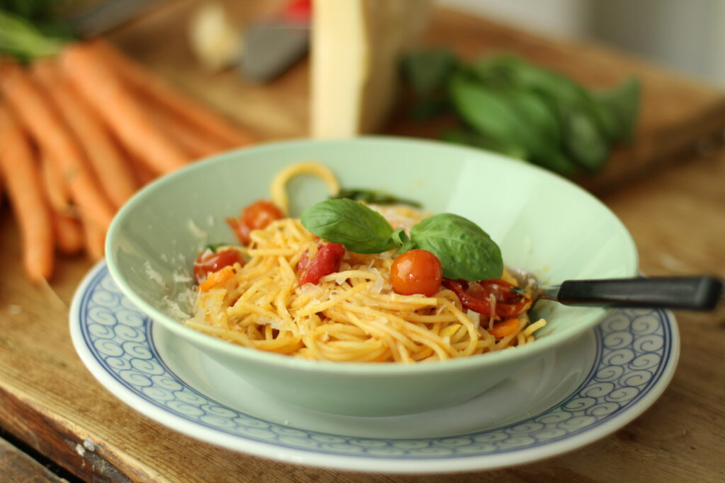 Spaghetti al telefono – pasta med tomatsås är en snabblagad middagsfavorit. Smält mozzarella blir till långa trådar.