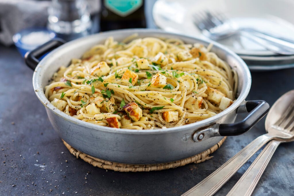 Spaghetti Carbonara med halloumi
