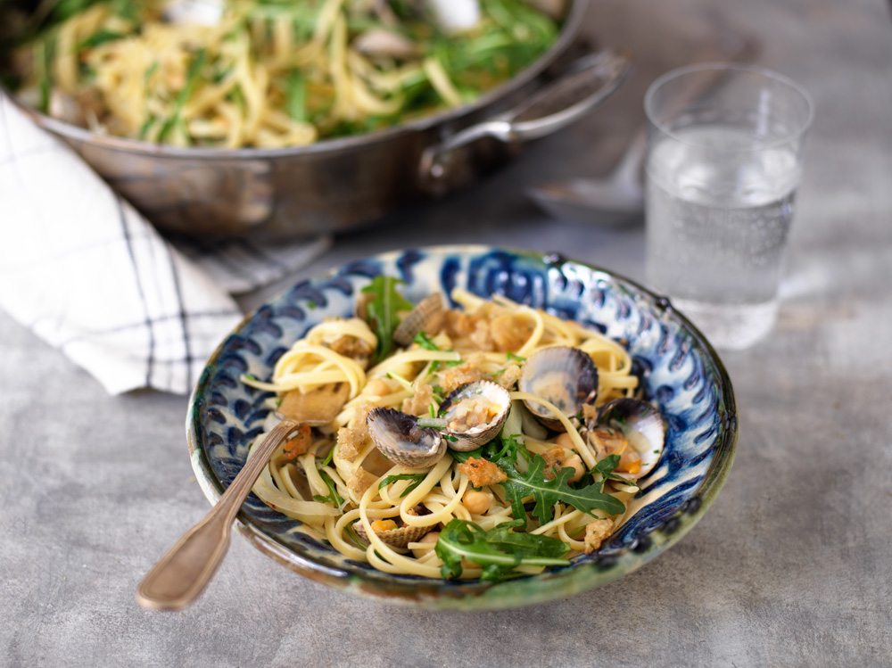 Spaghetti ceci e vongole, en italiensk pasta med smaker från Medelhavet. Passar såväl till vardagslyx som till helgen!