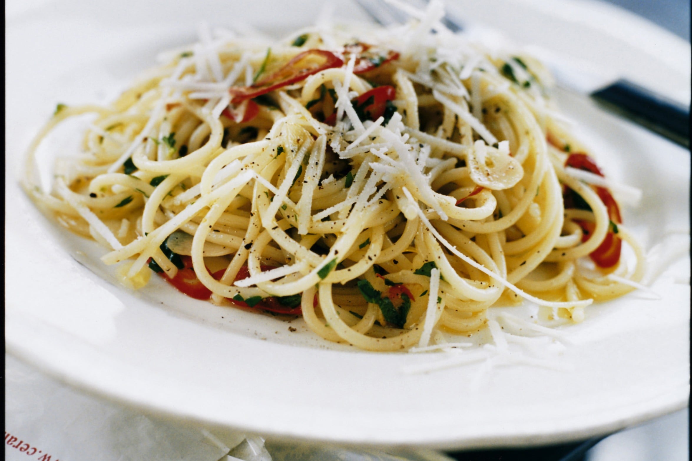 Spaghetti med vitlök, chili och pecorino
