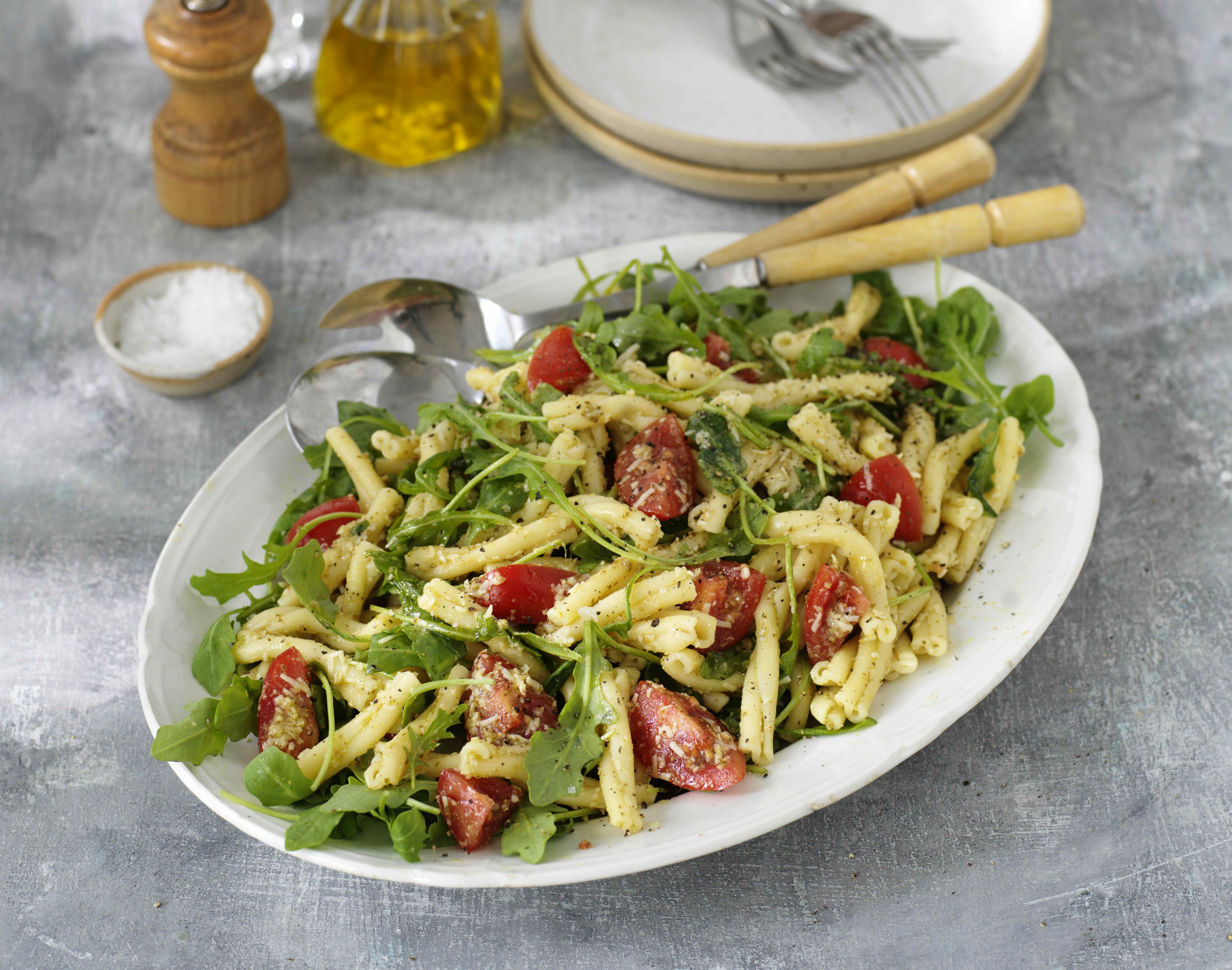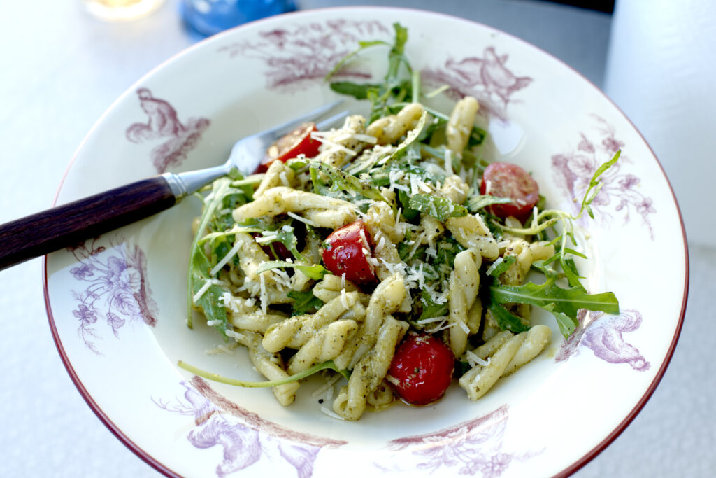 Pasta Strozzapreti med pesto, cocktailtomater och parmesan