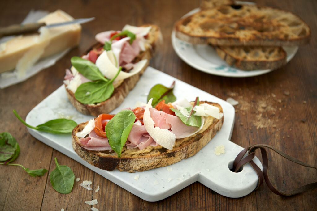 Surdegsbröd med italiensk skinka och kronärtskockskräm