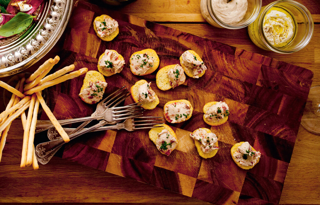Crostini med smakrik röra av strimlade soltorkade tomater och krämig ricotta. Enkelt och gott småplock, perfekt när man är många.