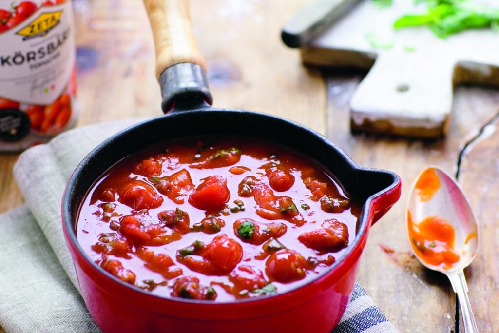 Vill ha en slätare tomatsås så kan du mixa såsen i korta intervaller med en mixerstav.