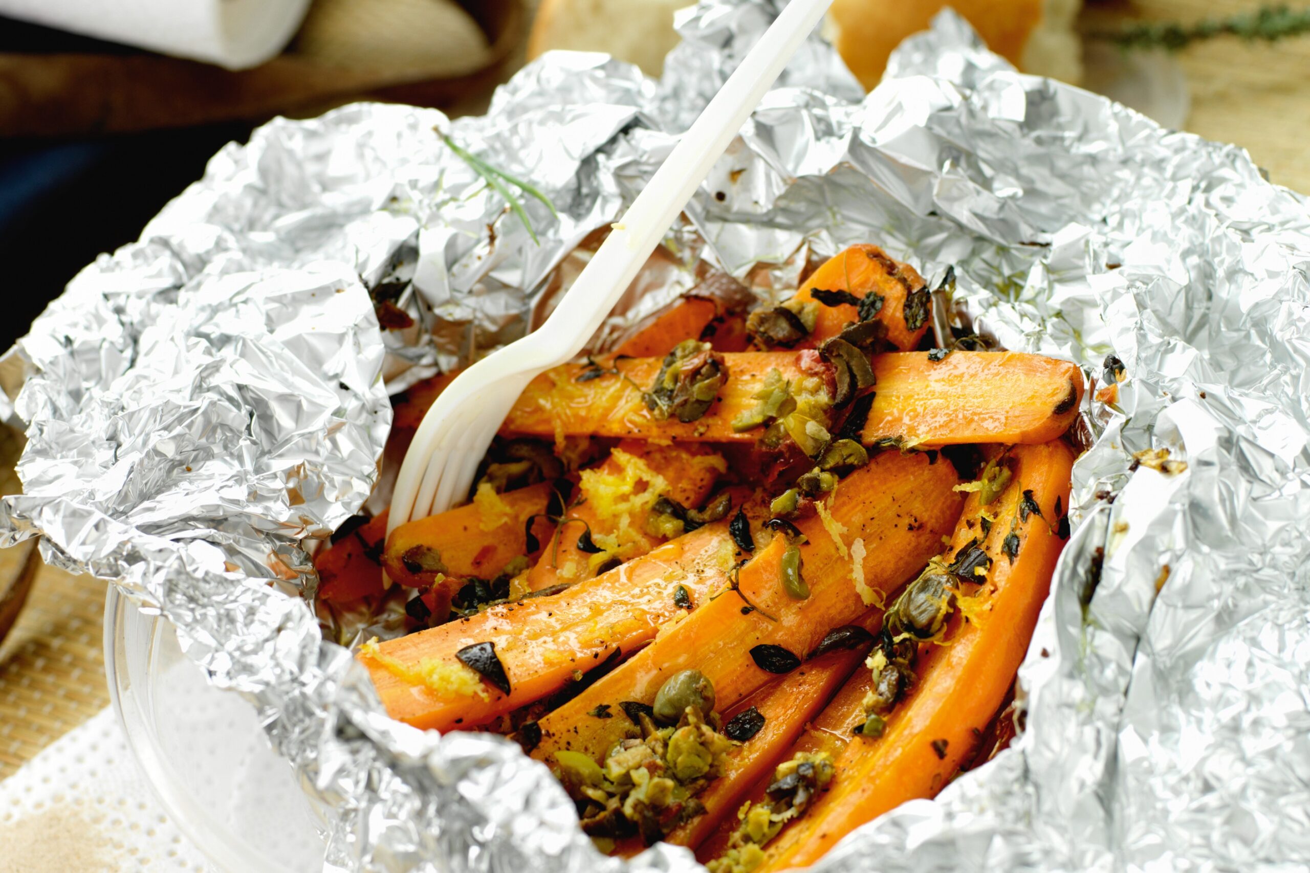 Ugnsbakade morötter med citron och oliver