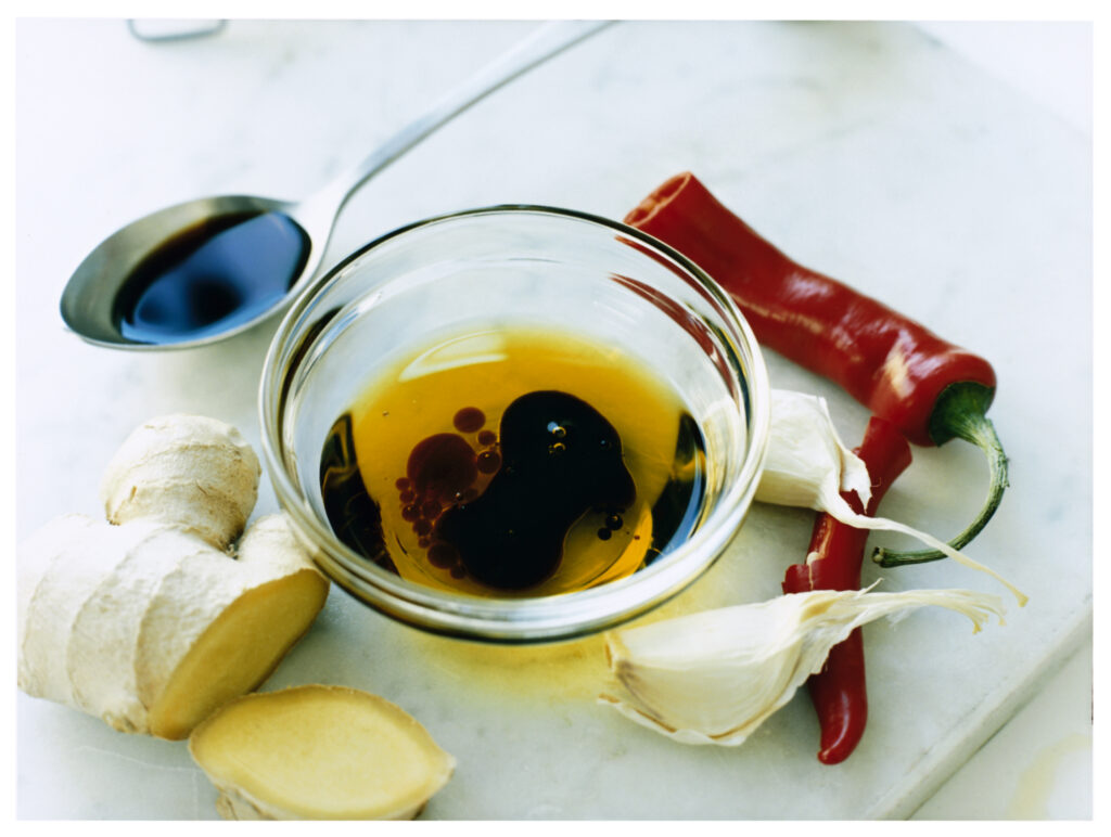En kryddig vinägrett med chili, ingefära och vitlök. Sojan ger vinägretten dess sälta.